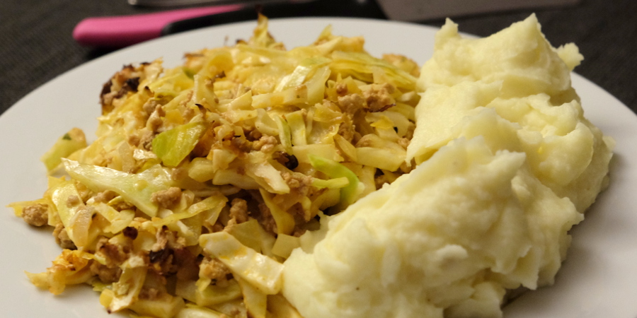 Statt das Gericht in der Pfanne zuzubereiten, können nach dem Anbraten des Hackfleisches alle Zutaten in einer Auflaufform gemischt werden. Danach mit etwas geriebenem Käse bestreuen und bei 200 °C im Backofen je nach gewünschter Knackigkeit des Krauts für 20-30 Minuten backen.