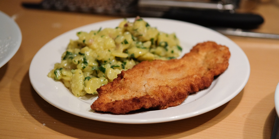 Anmerkung:Klappt natürlich genauso gut auch mit Schweineschnitzel, dann ist es allerdings kein echtes Wiener Schnitzel mehr, sondern ein Schnitzel Wiener Art.