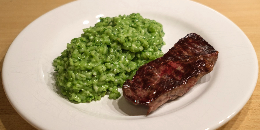 Während der Reis gart, Bärlauch waschen und fein hacken. Parmesan reiben. Kurz bevor der Reis gar ist, Bärlauch, Parmesan und 1 EL Butter unterheben. Mit Salz und Preffer abschmecken. Das Risotto eignet sich als Beilage zu Fisch oder Fleisch, schmeckt aber auch schon pur hervorragend.
