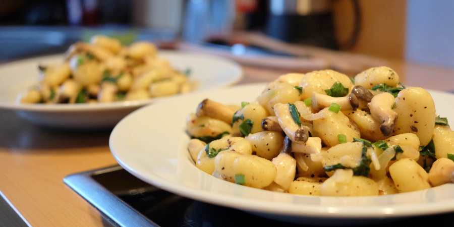 Achtung: Es ist wichtig, dass für die Gnocchi mehlig kochende Kartoffeln verwendet werden und die Kartoffeln nach dem garen gut ausdampfen können, sonst wird der Teig extrem klebrig!