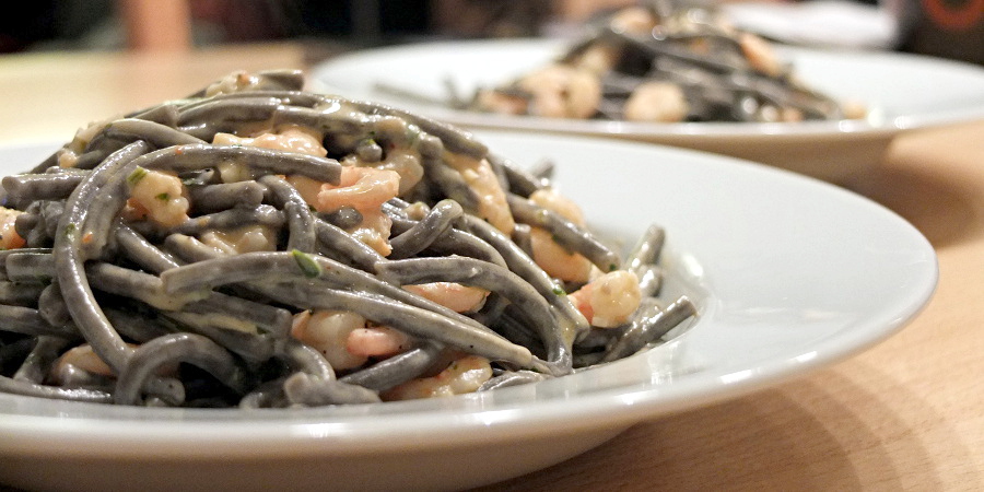 Nudeln in kochendem Salzwasser nach Packungsanweisung bissfest garen. Währenddessen Olivenöl in einer Pfanne erhitzen. Knoblauchzehen in feine Scheiben schneiden und eine Minute im Öl anschwitzen. Garnelen mit in die Pfanne geben. Sobald die Garnelen etwas Wasser abgegeben haben, Frischkäse einrühren und schmelzen lassen. Mit Salz, Pfeffer und frisch gehackten Kräutern (z.B. Basilikum) abschmecken. Nudeln mit in die Pfanne geben und mit der Soße vermischen.