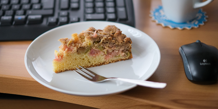 Backofen auf 180 °C vorheizen. Rhabarber in Stücke schneiden, mit 1 EL Zucker vermischen und eine Weile ziehen lassen. Aus den restlichen Zutaten einen Rührteig herstellen und in eine gefettete Springform füllen. Rhabarberstücke auf dem Teig verteilen. Für die Streusel Butter aufschmelzen und mit restlichen Streusel-Zutaten mischen. Mischung über den Rhabarber geben. Auf mittlerer Schiene für 40-50 Minuten backen.
